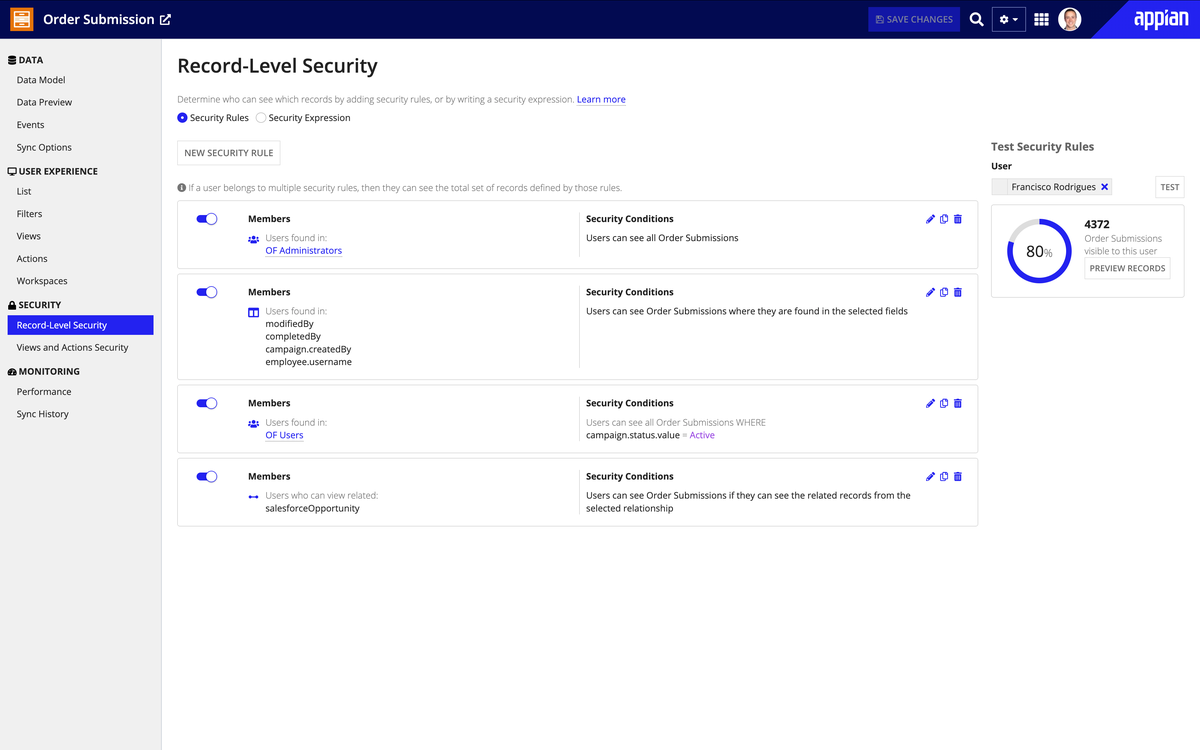 Appian processes incorporate native generative AI in partnership with Amazon Bedrock, using Anthropic’s Claude as the foundational LLM. Data remains secure because stateless AI models “forget” information after processing. Plus, data is protected with role-based access: if a user shouldn’t see specific information, Appian AI won’t show it.